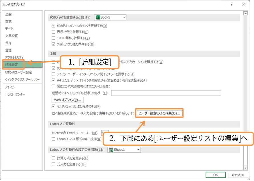 (03) [詳細設定]の下部にある[ユーザー設定リストの編集]へ進みましょう。